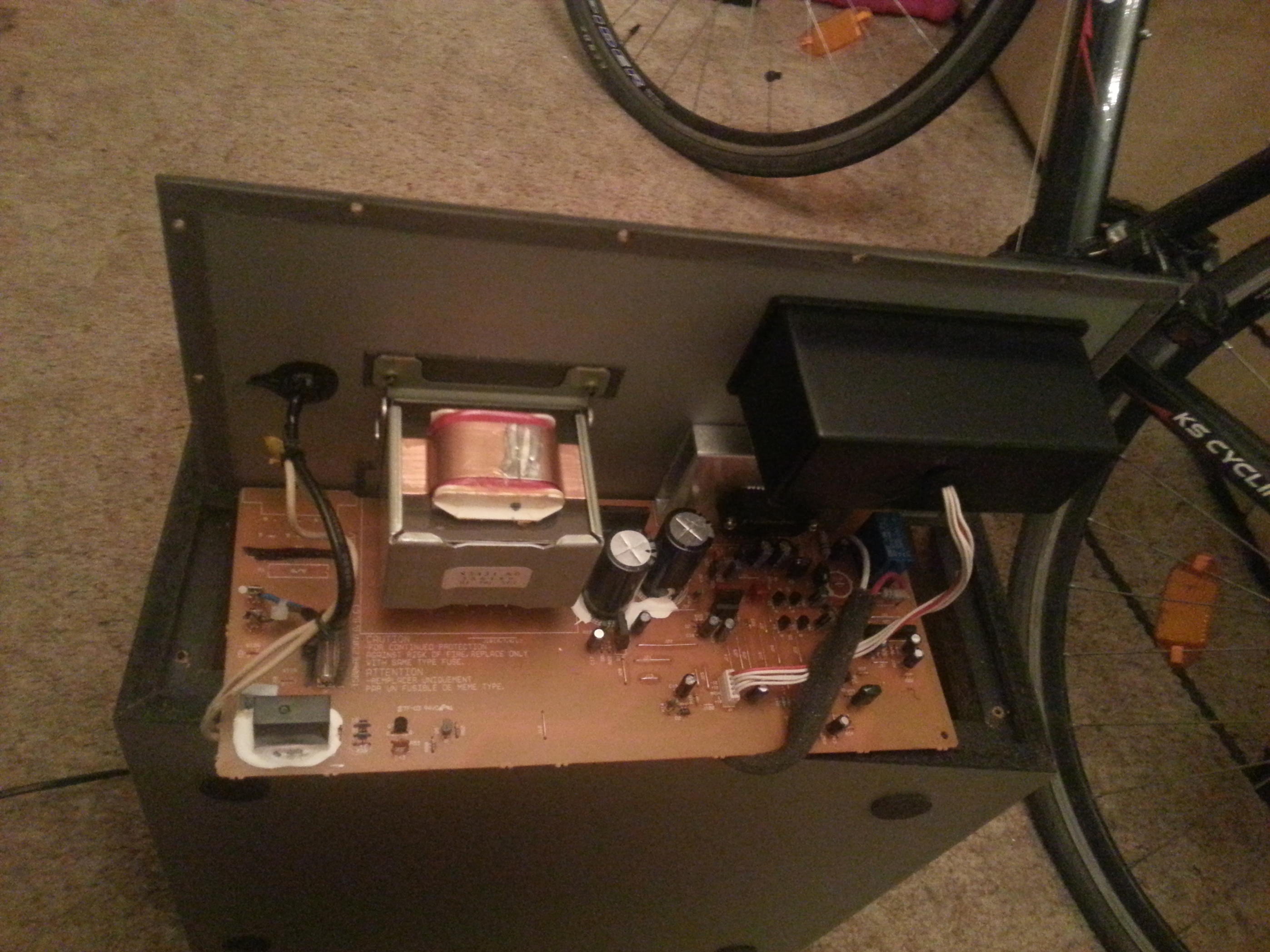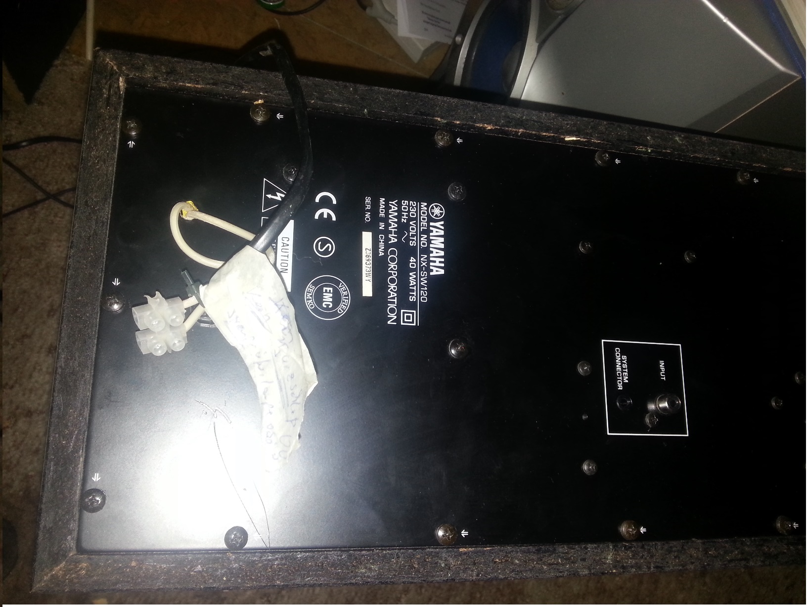 Faul wie ich bin, habe ich den Subwoofer nachdem ich die Bilder (sorry für die schlechte Quali btw, hoffte das reicht aus) schoss natürlich nicht wieder ordentlich zusammengebaut und weggepackt und so ist passiert, was passieren musste... gegengelaufen, umgefallen, Plantine geknickt.