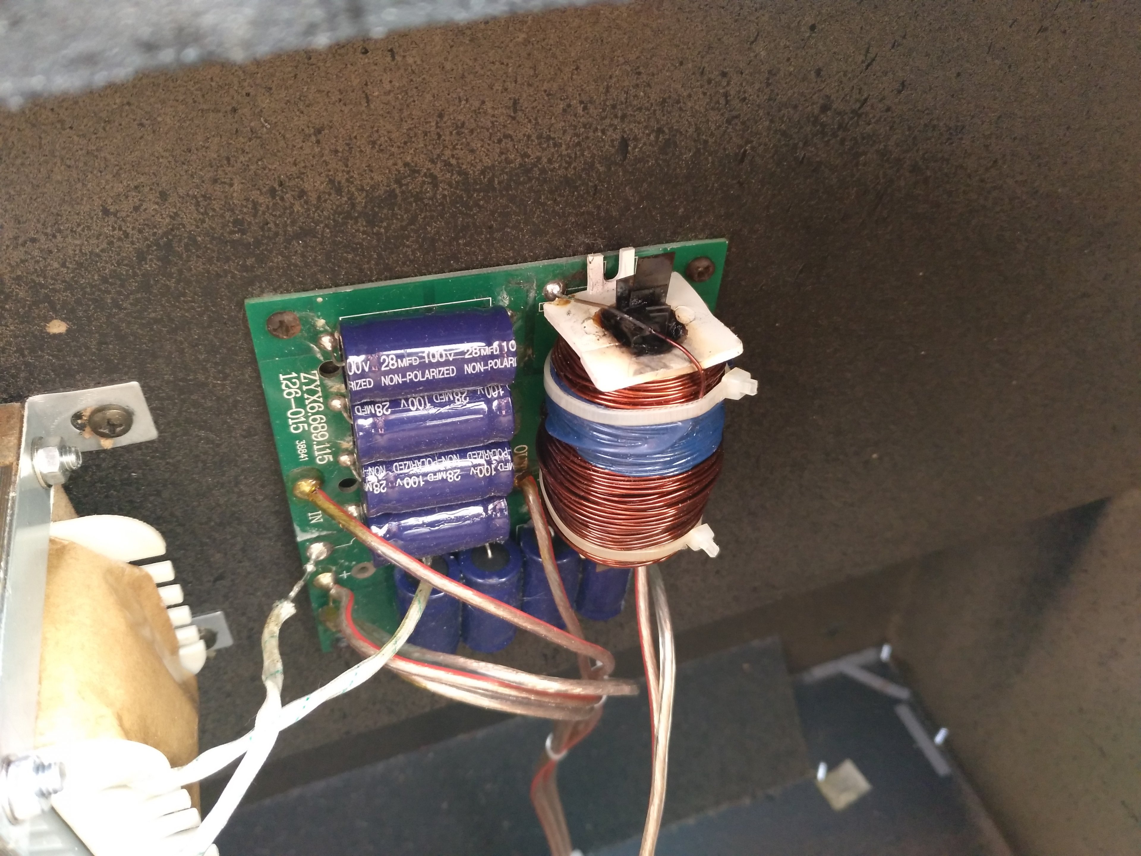 Nun suche ich die Ursache bzw. möchte das reparieren. Äußerlich ist weder am Lautsprecher noch an der Weiche zu sehen. Außer das die Weiche schwarz ist (siehe Foto im Anhang). Oder lag das an dem defekten Lautsprecher, das die Weiche einen ab bekommen hat? Der lief ja so noch ca eine halbe Stunde. Hatte schon bei anderen Tops erlebt, das einfach die Lautsprecher abgeraucht sind. Diese wurden getauscht und weiter gings.
