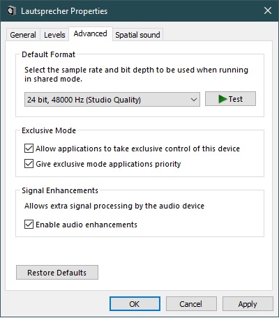 Das Problem ist nun also, dass der Subwoofer nicht angespielt wird. Egal ob ich Musik, Filme oder Spiele abspiele. Wenn ich aber über die Lautsprecher konfiguration, Bild , die einzelnen Lautsprecher anspiele funktioniert auch der Subwoofer. Auch funktioniert alles über das Audiotestfile von Frauenhofer.