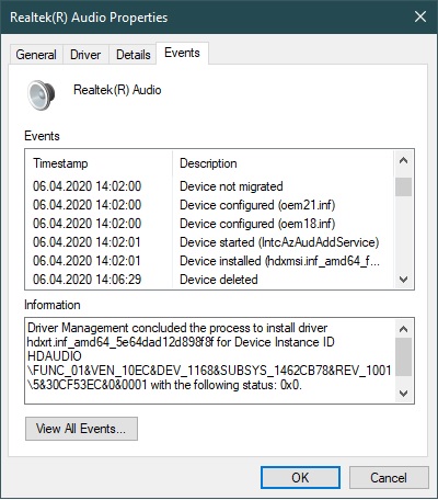 Auf der Mainboardseite von MSI werden 2 Treiber angeboten. Ich habe beide ausprobiert. Ich habe auch nahimic installiert, was aber irgendwie nichts bringt.(Bild) Ich habe die Treiber und das Gerät auch schon mehrmals über den Gerätemanager deinstalliert und die Treiber neu installiert, was nichts brachte.