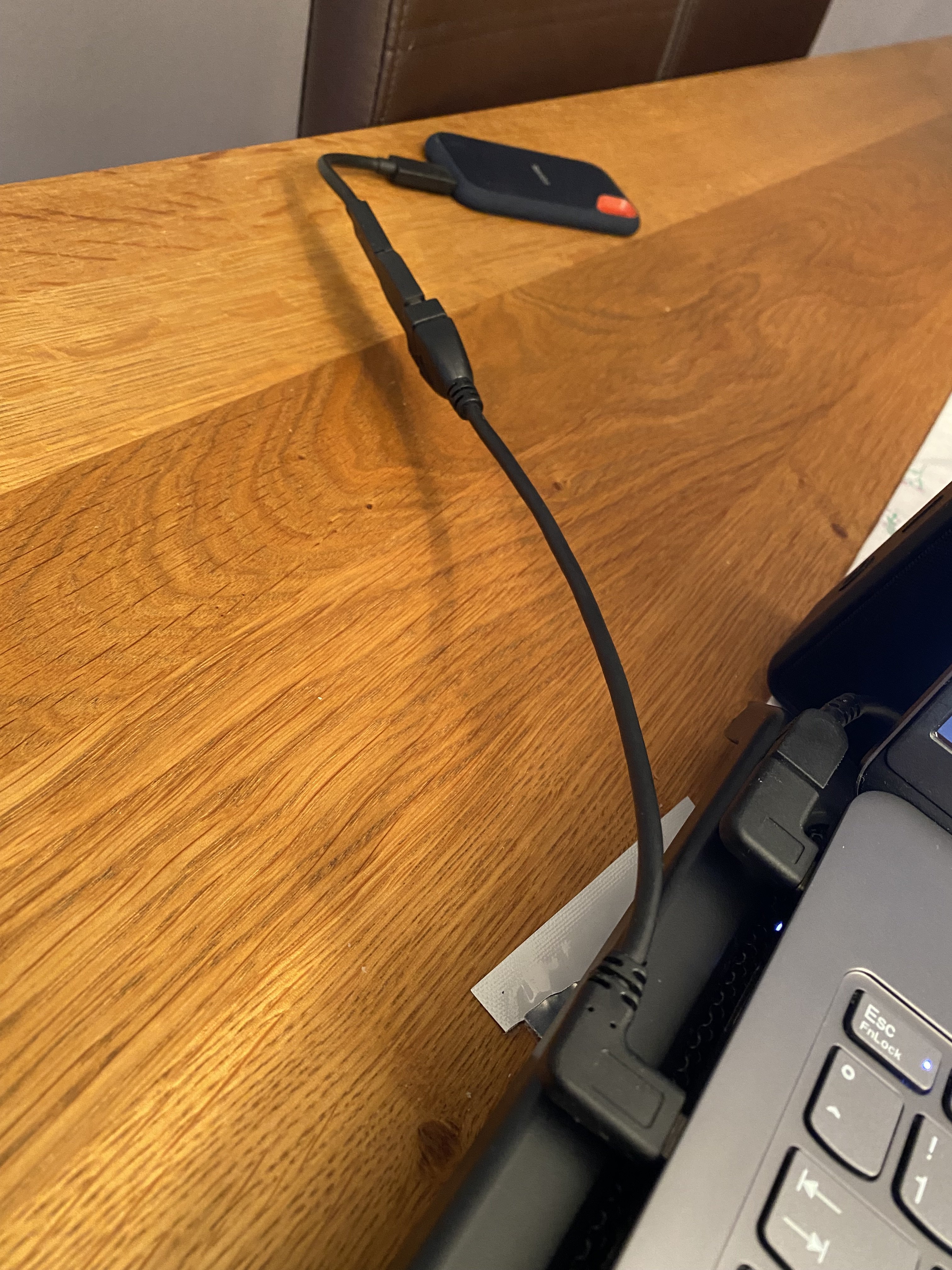 Das gewinkelte Kabel muss fast sein, weil ich zur Wand nur 3cm habe und ein gerader USB-C Stecker sich vermutlich nicht soweit biegen lässt, dass es am Ende passt.