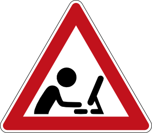 irgenwo sah ich mal dieses "Achtungs-Schild" (dreieckig, roter Rahmen) mit einer art "Hacker" (ein Typ der eifrig in die Tastatur haut) darauf.