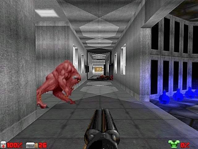 Und die Gegner sind verfallen, wenn man sie erwischt hat, allerdings kann man sagen, dass die Teile aussahen, wie 3D-Achtecke mit Textur.