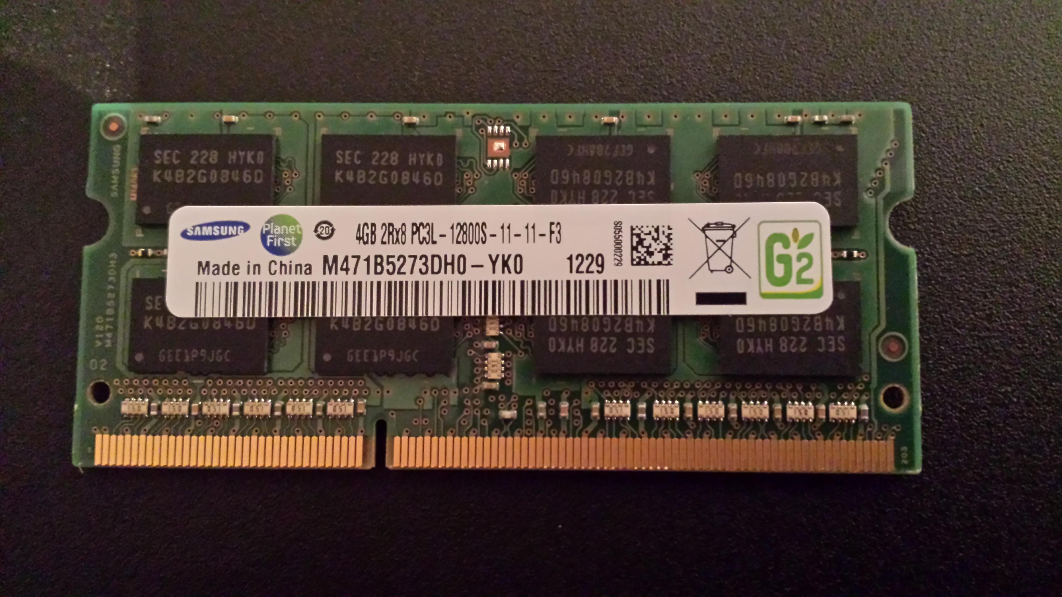 Eingebaut ist ein 4GB 2Rx8 PC3L -12800S-11-11-F3(Siehe Bild)