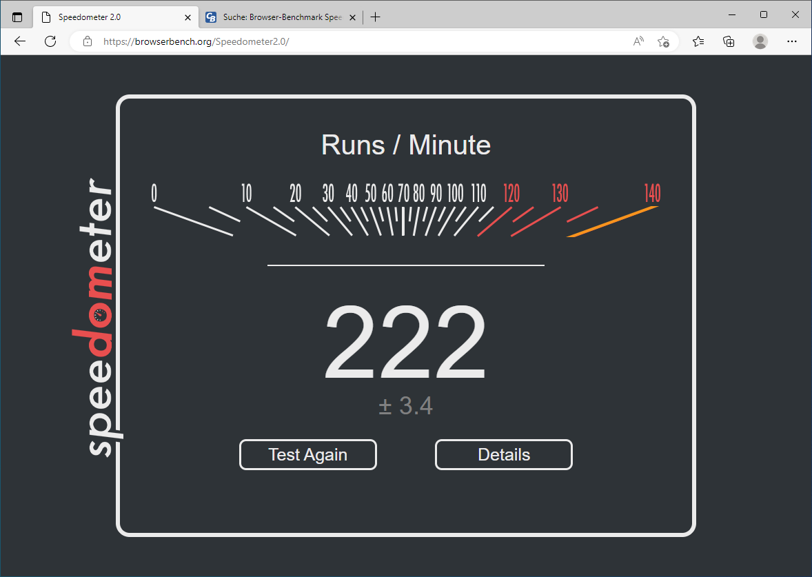 Suche: Browser-Benchmark Speedometer Ryzen 1800X vs. i7-6900k
