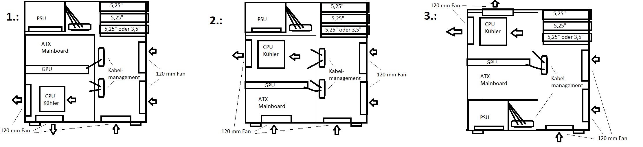 so gebaut, dass der CPU Kühler nicht hinter den Forntlüftern sitzt, sondern