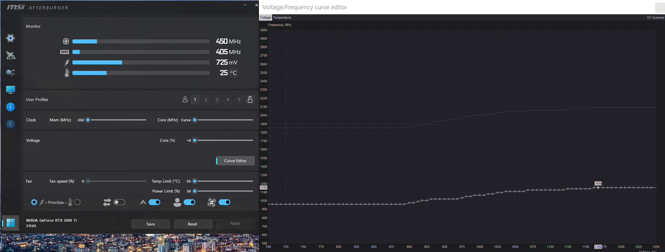Ich habe die Karte auf 0,750 Volt festgelegt. Undervoltet war Sie. Mal sehen, ob ich das bei der RTX 3050 auch machen muss. Also etwas Undervolten oder ob ich einfach nur das Powertarget limitiere.Melu76 schrieb:Undervolt kommt von VOLT und nicht von MHZ. du hast einfach nur (wenn ich mir das bild anschaue) die kurve runtergezogen. d.h. er taktet jetzt mit demselben verbauch niedriger.