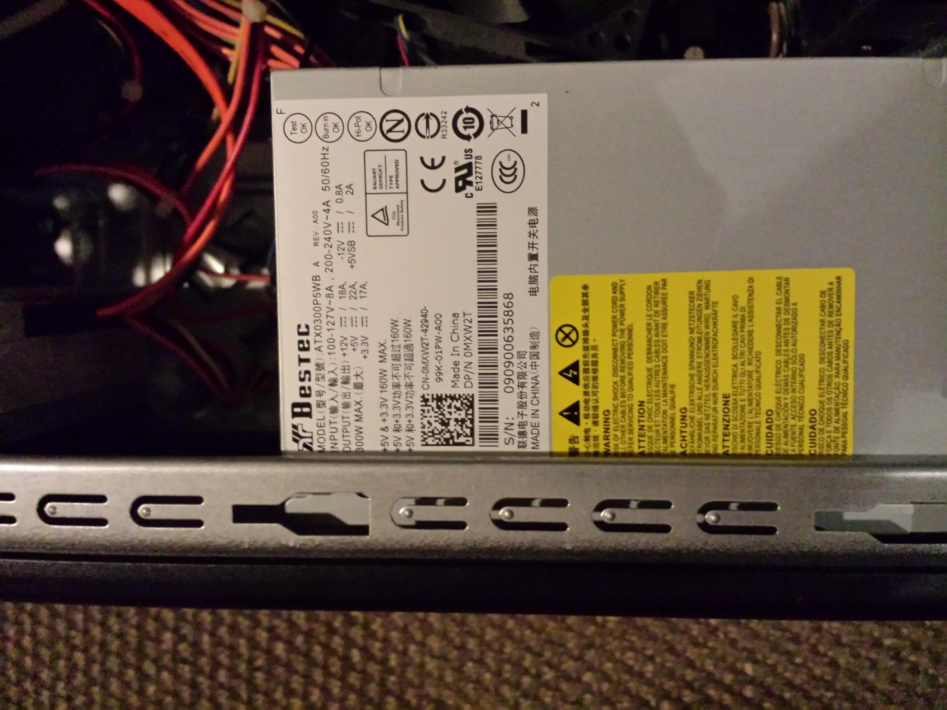 Das System ist ein Dell Inspiron 546. Es scheint jedoch laut dem Handbuch für alle Inspiron Modelle von 535-546 das gleiche Netzteil verwendet zu werden: