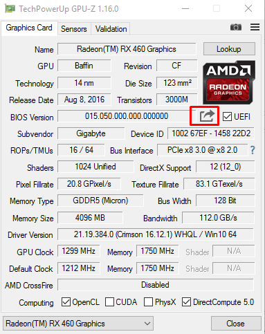 Gibt es irgendwo ein Gigabyte RX 460 4GB F3 Bios welches die Shader einheiten geunlockt hat?