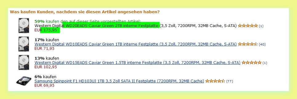Pahul schrieb:Wenn du ordentlich Platz, wie in einer 7-Zimmer-Wohnung haben willst, kann ich dir diese 2 TB von WD empfehlen. Ist außerdem noch sauschnell und unhörbar.