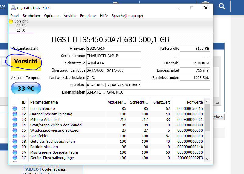 Ich habe auf meinem Laptop 2 HDDs . Vorgestern ging es einmal nicht. Also es konnte nicht hochfahren. (Siehe letzte Frage..)