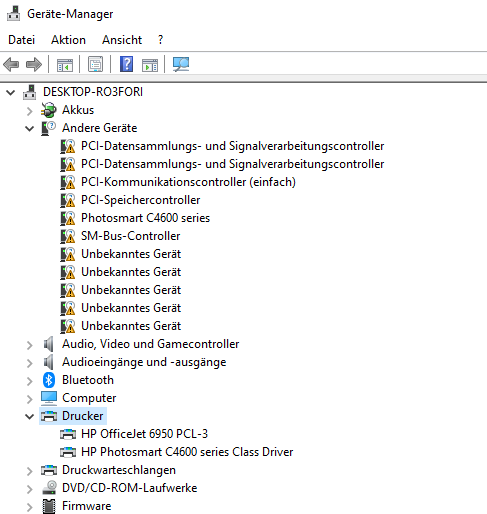 Die Installation des Betriebssystems auf dem Computer ist noch gar nicht vollständig abgeschlossen, es fehlen diverse Treiber. Warum beginnst Du dann schon Drucker zu installieren?