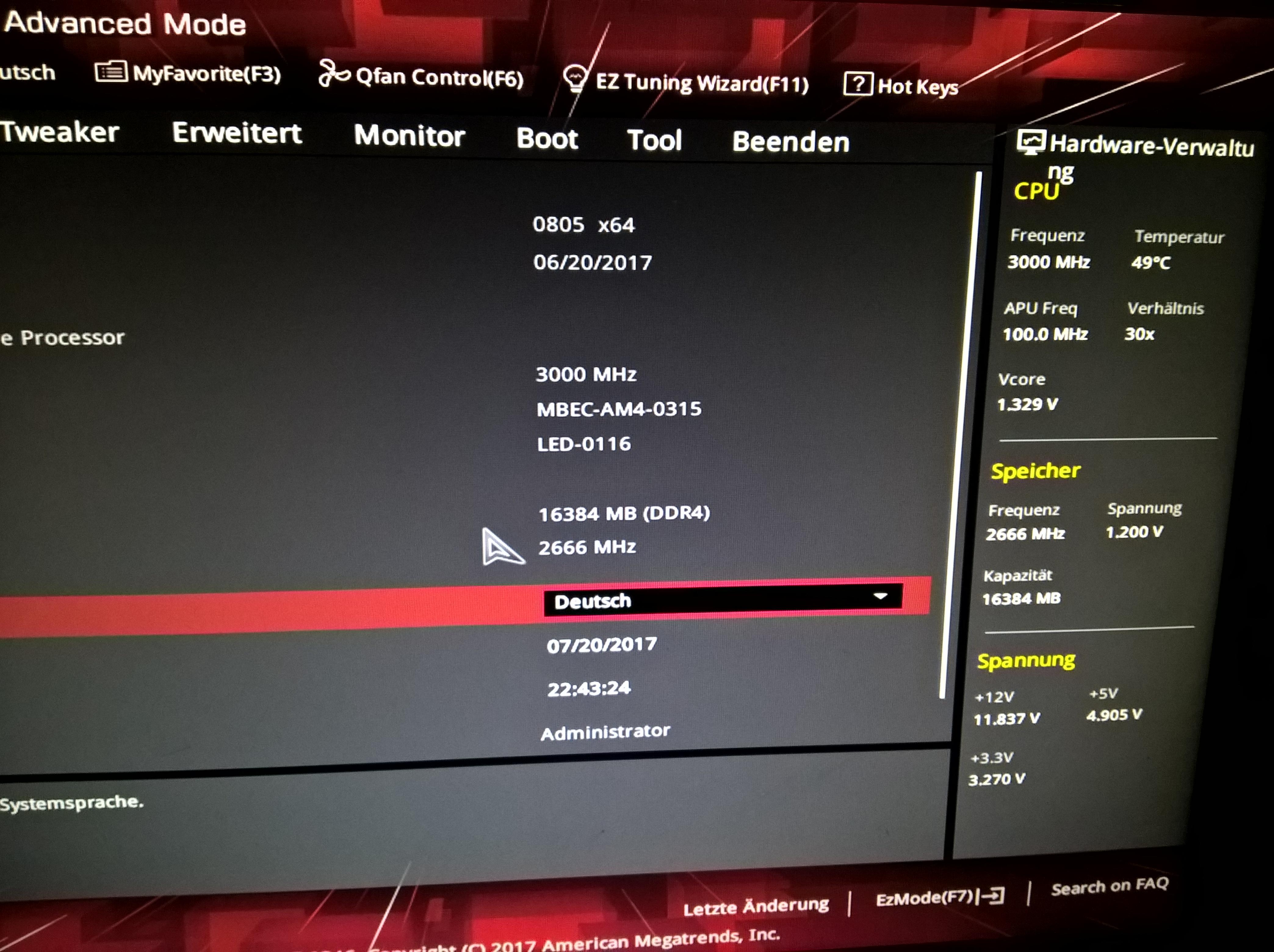 Leider schein beim Reboot noch was schief zu laufen. Wenn ich einen Neustart mache, kommt er nicht mehr hoch (geht kurz an, aber gleich wieder aus - das in einer Schleife) und der RAM stellt sich auf 2133 zurück. Ich muss dann ganz ausschalten und wieder starten. Ich werde das mal übers Wochenende beobachten.