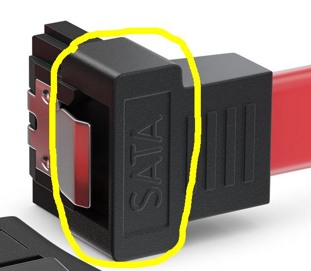 Hier mal mit Bild. Bräuchte einen Stecker, 90°, ohne das gelb markierte da. Ob das nun 90° sind oder nicht, ist egal, das Teil was in SATA kommt nur, so flach muss das blöde Teil sein. Gibt's sowas überhaupt?