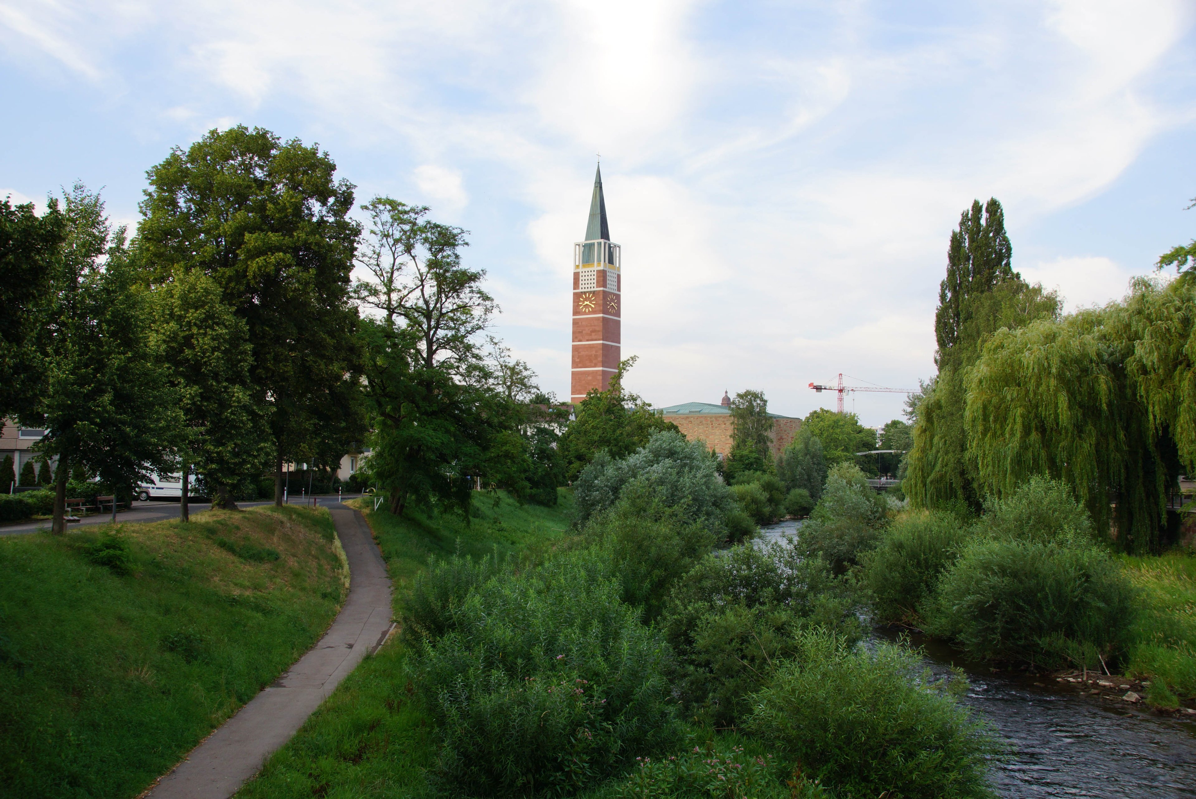 Kräne, Stromleitungen, Abfalleimer, Papierfetzen, Personen im Hintegrund,....
