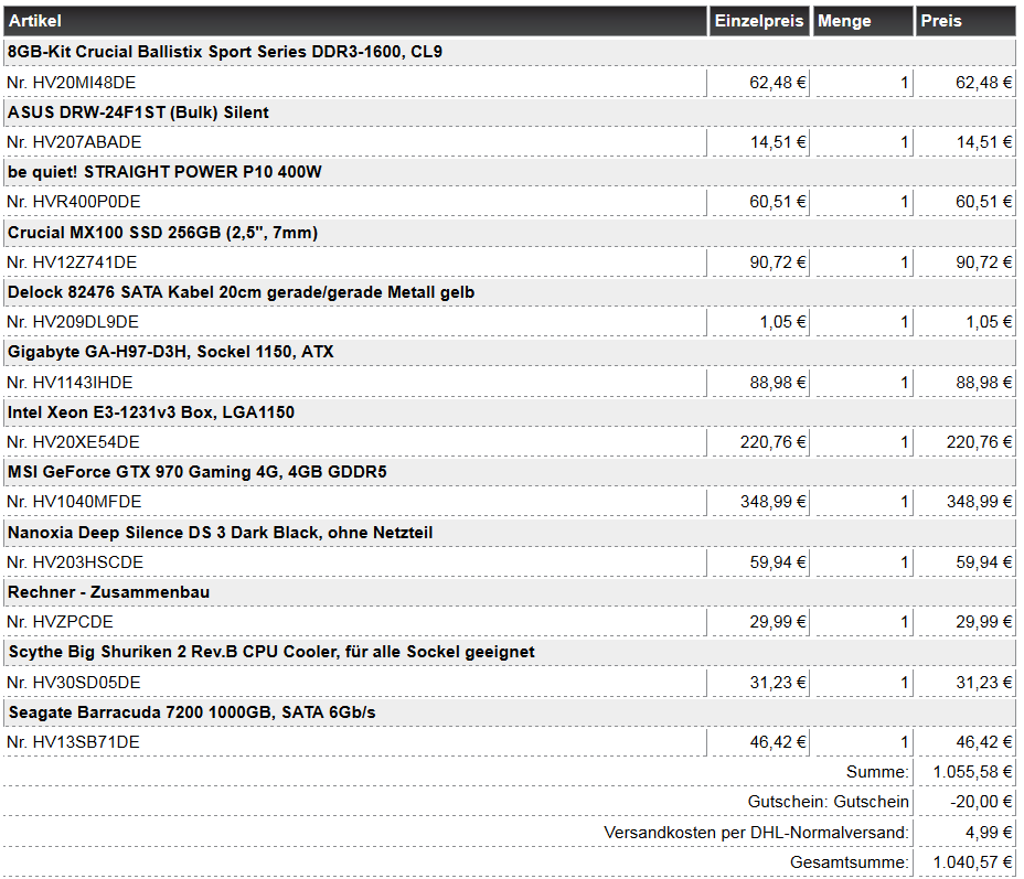 JollyRoger2408 schrieb:Die 400W PSU ist für diese Zusammenstellung ausreichend; die neuen GTX 970 GPUs sind sehr sparsam, was den Stromverbrauch angeht.