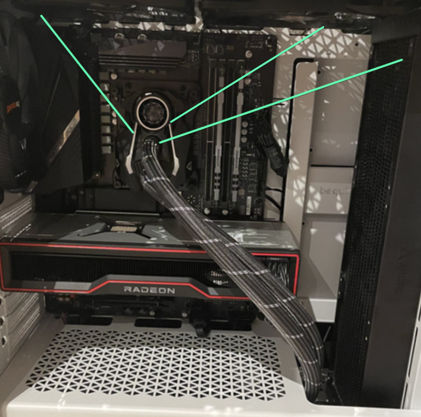 Ich hatte eigentlich das be quiet! Pure Base 500DX im Kopf. Aber nach Angaben bei Reddit und co, ist der Einbau des Radiators dort in der horizontale nicht möglich, nur seitlich.