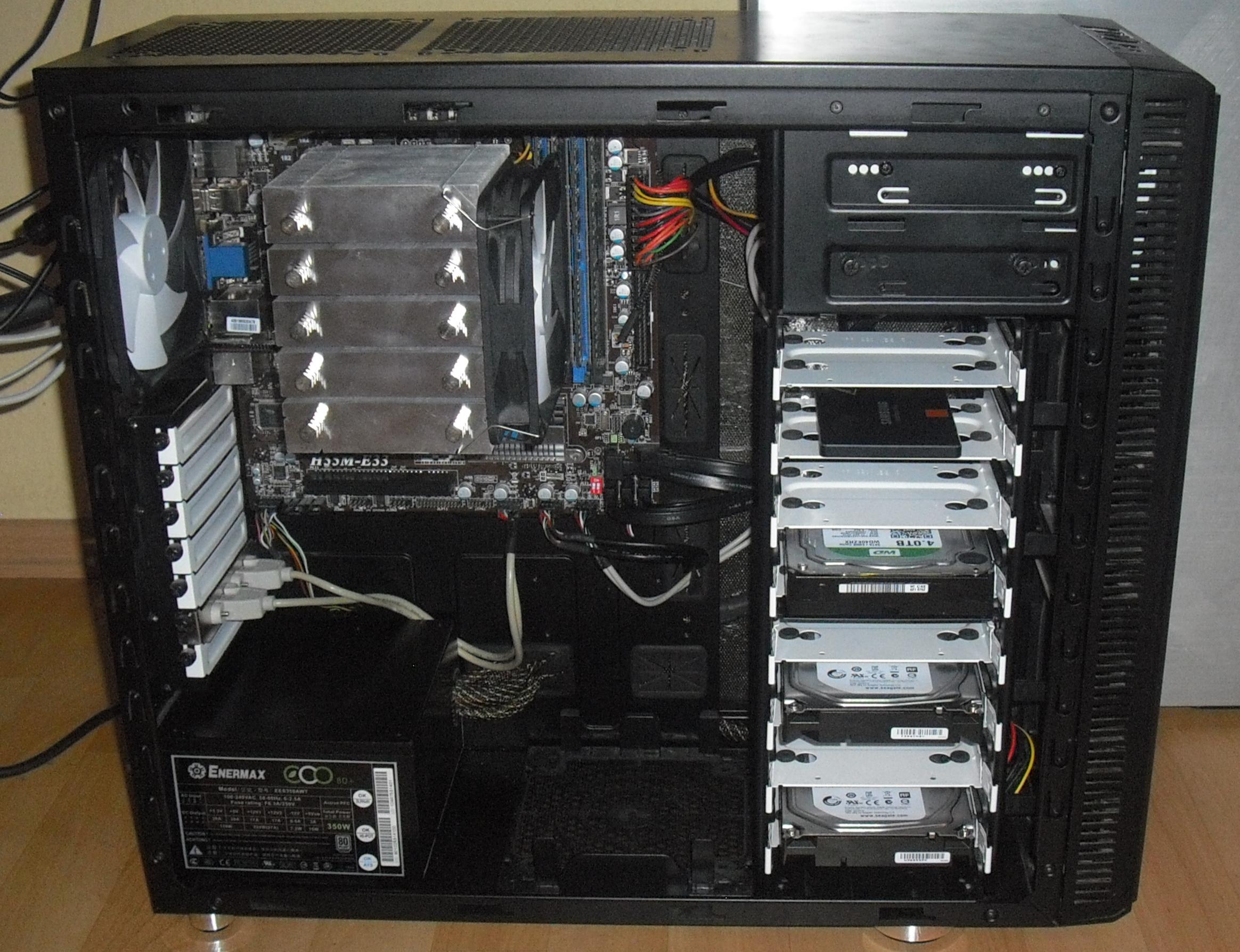PS: In meinem Gehäuse (kein Nanocia) ist auch noch Platz für 4 HDDs. Noch mehr liessen sich irgendwo ankleben Ich hab die überflüssigen Festplattenkäfige ausgebaut, weil der Airflow und Temperatur Priorität haben. Außerdem wollt ich den Verschleiß und die Betriebskosten minimieren. Für reine Datensicherung sind abgekapselte Lösungen vorzuziehen, daher auch einige Bedenken meinerseits bei der NAS-Lösung. Aber dieser PC wird halt nicht 24/7 laufen, sondern nur bei Bedarf schnell hochgefahren.