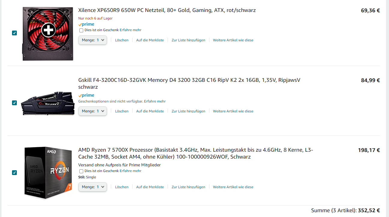 Aus Kostengründen kannst du durchaus einen R5-5600 nehmen. Und lass dir nicht einreden man braucht unbedingt 8 Kerne. 6 Kerne und 12 Threads reichen noch eine ganze Weile aus.cmonio schrieb:Welche CPU würdest du empfehlen.