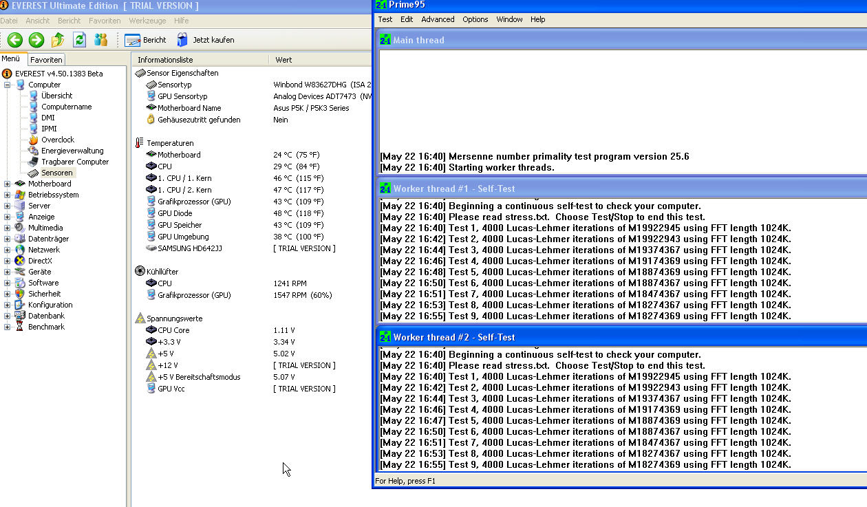 Ich hätts ja nicht gedacht, aber ich hab bei ALLEN Lüftern außer dem Noctua leises Klackern vernommen bzw beim Slipstream war es eher ein Schleifen. Wenn man direkt rangeht mit dem Ohr hört man es schon raus, auf 10-20cm auch noch, ab 50 cm subjektiv nicht mehr.