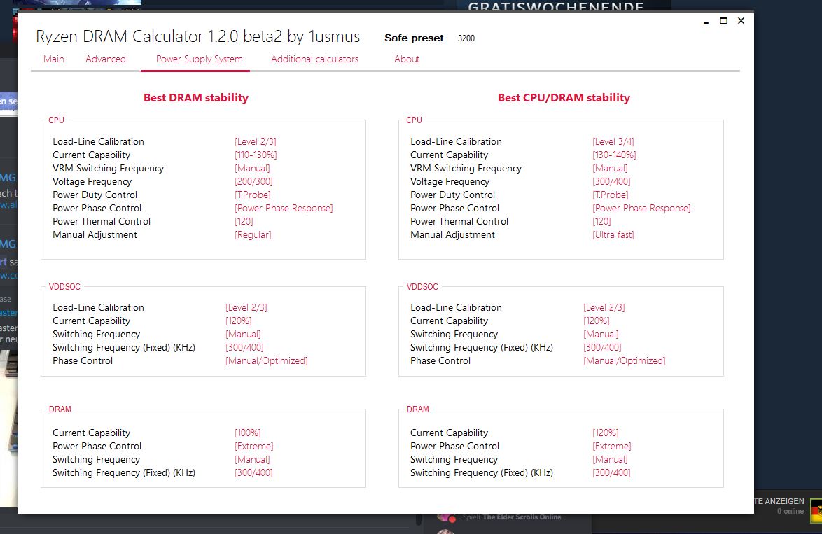 Mehr habe ich mich selbst noch nicht getraut. Mit diesen Settings läuft die CPU bei ca. 4,15 GhZ. Das Ryzen Master-Tool zeigt maximal 4250 MhZ an, der Windows Taskmanager zeigt immer so etwa 4,10 bis 4,15 an.