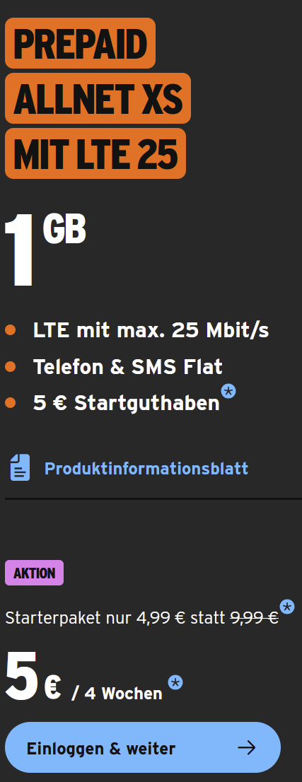 ich suche einen Mobilfunktarif für max 5 Euro.