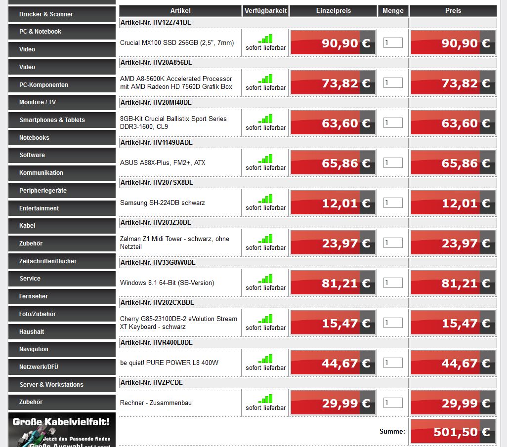 Altenativ, wenns nicht unbedingt eilt, die Augen offen halten, das Angebot kommt immer mal wieder.