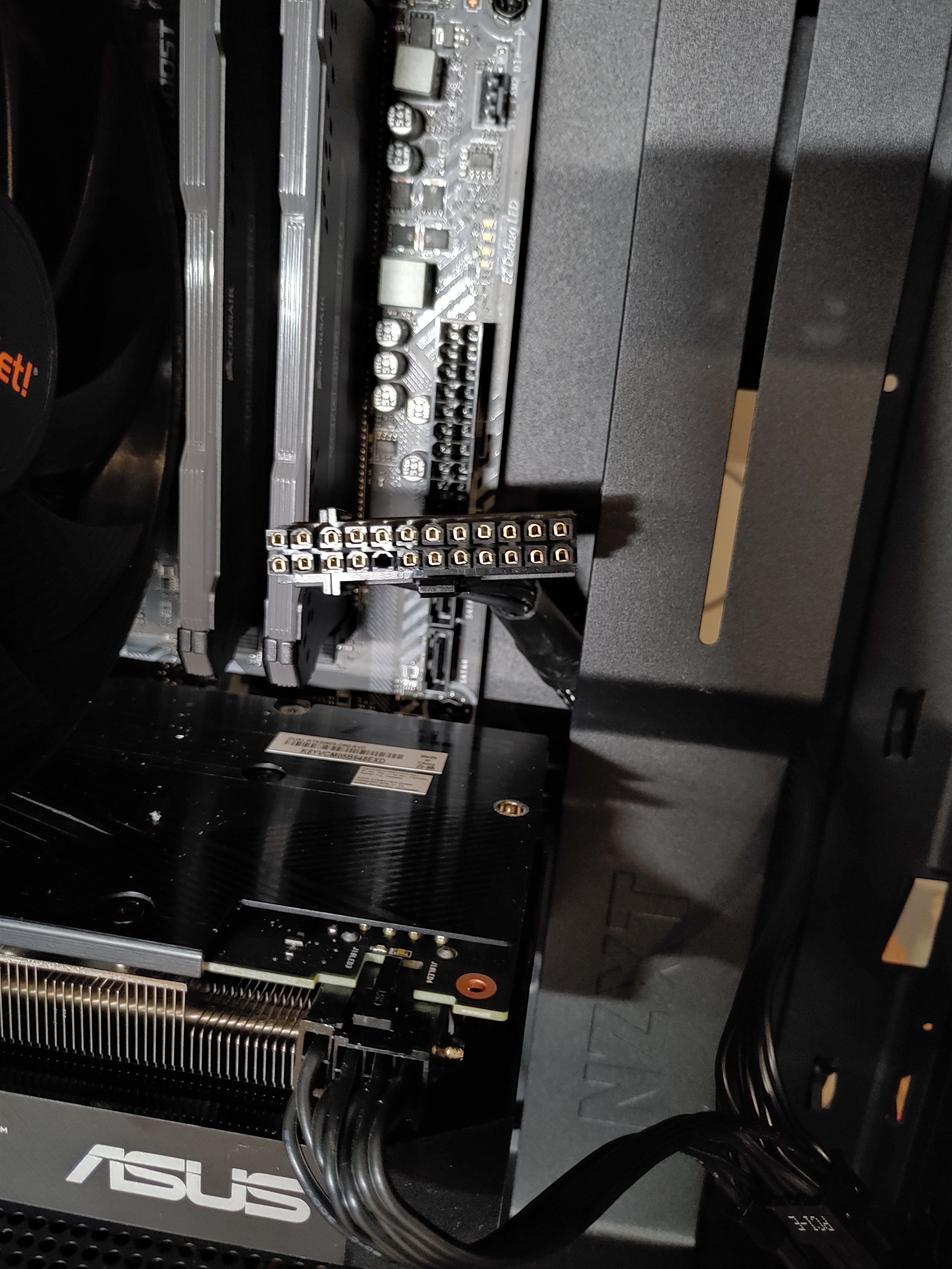 Jetzt ist alles angekommen und eigentlich wäre ich mit dem Zusammenbau fertig, jedoch leuchtet lediglich die Grafikkarte, der Rest des Systems springt nicht an. Was habe ich verkehrt gemacht? Kann es daran liegen dass hier auf dem Bild der 5. Pin der unteren Reihe ohne die Metallöse ist?