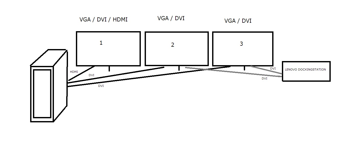 Szenario 1) Ich arbeite gerade nicht, würde also gerne alle 3 Monitore (Surround) über meinen privaten Rechner ansteuern undverwenden.