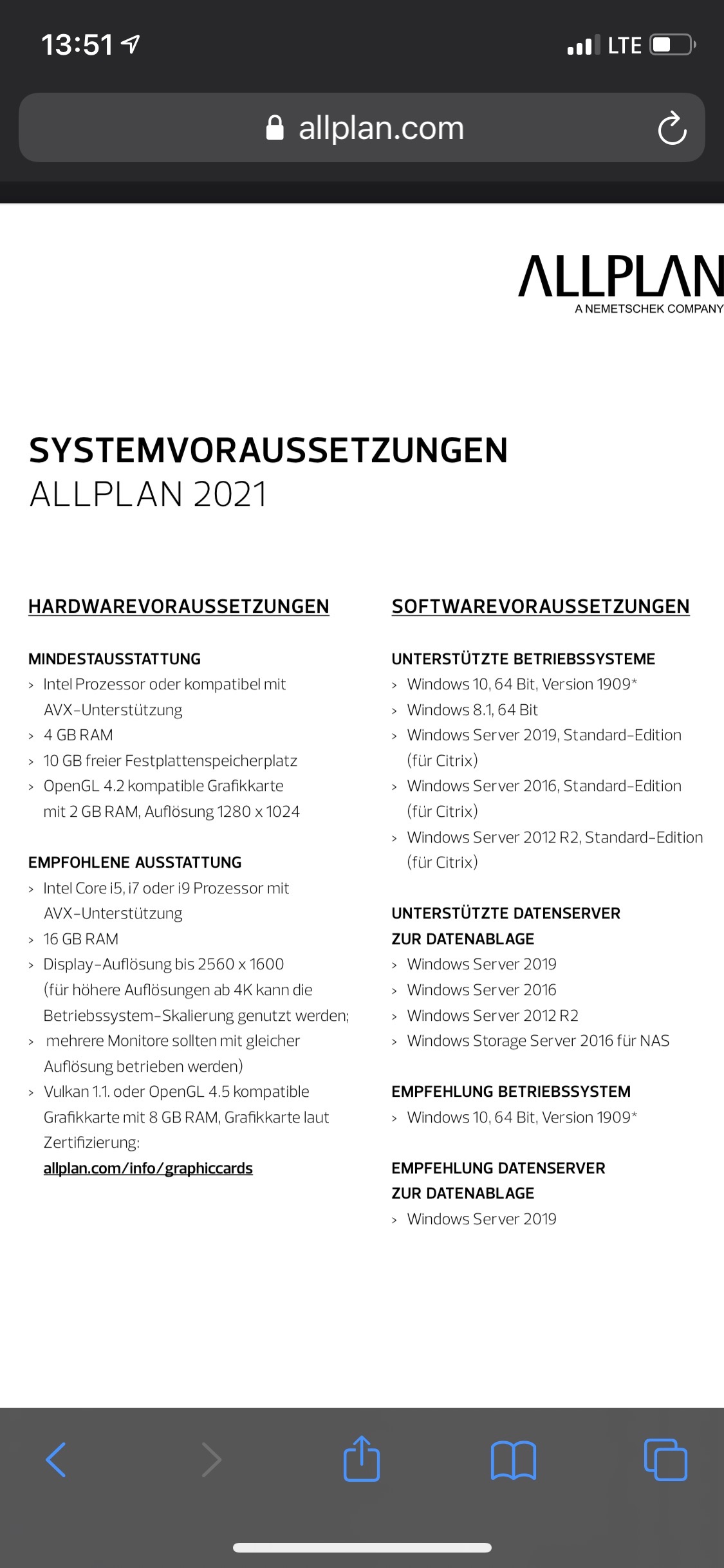 Allplan bis 2019, Anwendungsbereich sollte professionell sein. Bereich perfomance oder highend (nicht basis).