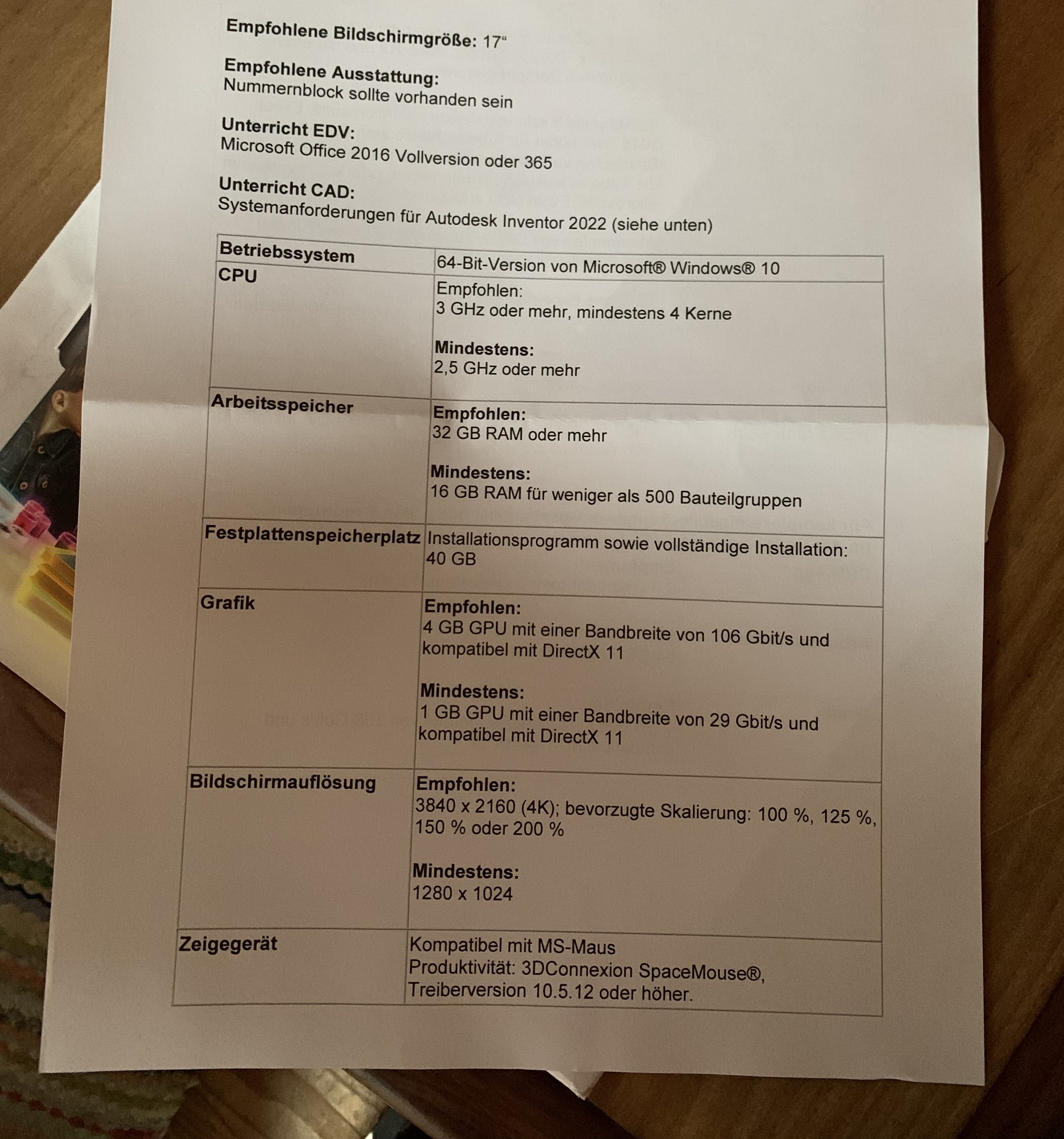 Ich brauche für die Meisterschule einen Laptop der die im Datenblatt aufgeführten Werte erfüllt .