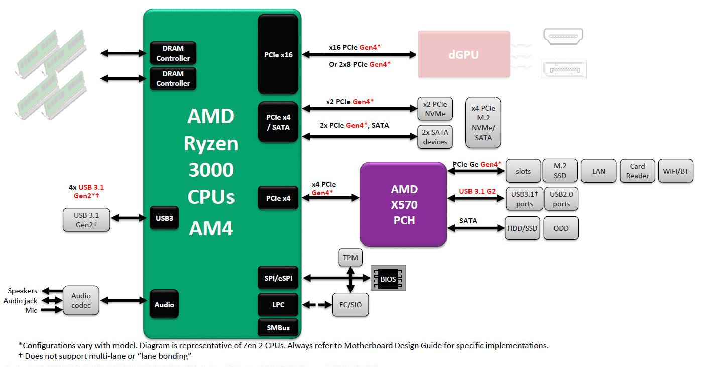 Sprich verwendet man mehr als eine M.2. NVMe SSD mit PCIe 4.0 x4 Interface am X570 muss man Geschwindigkeitseinbußen rechnen, da der Chipsatz selber nur mittels x4 Lanes angebunden ist.