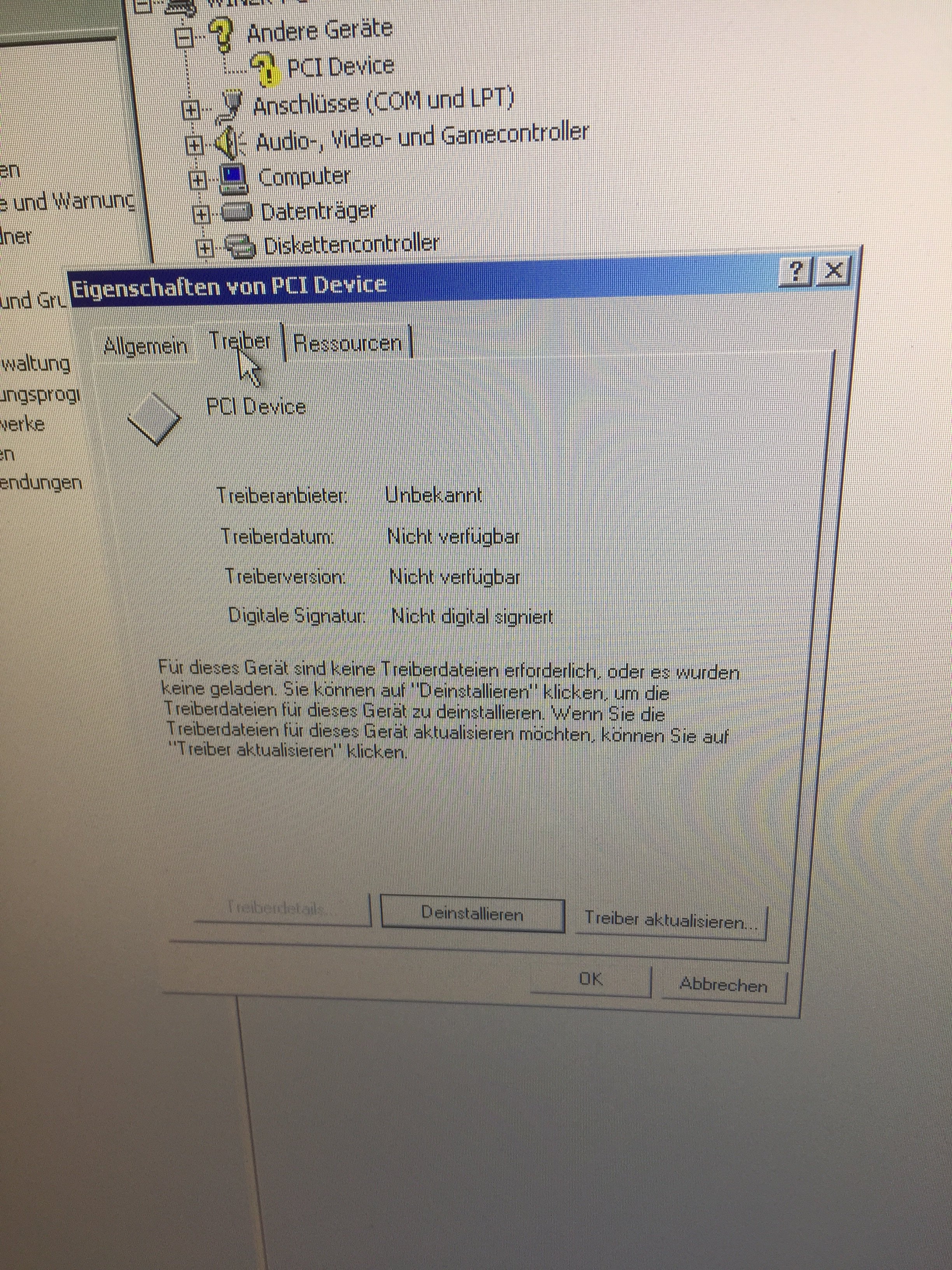 Auf dem 2. Foto hat er den Treiber installiet, aber die konifg passt nicht.