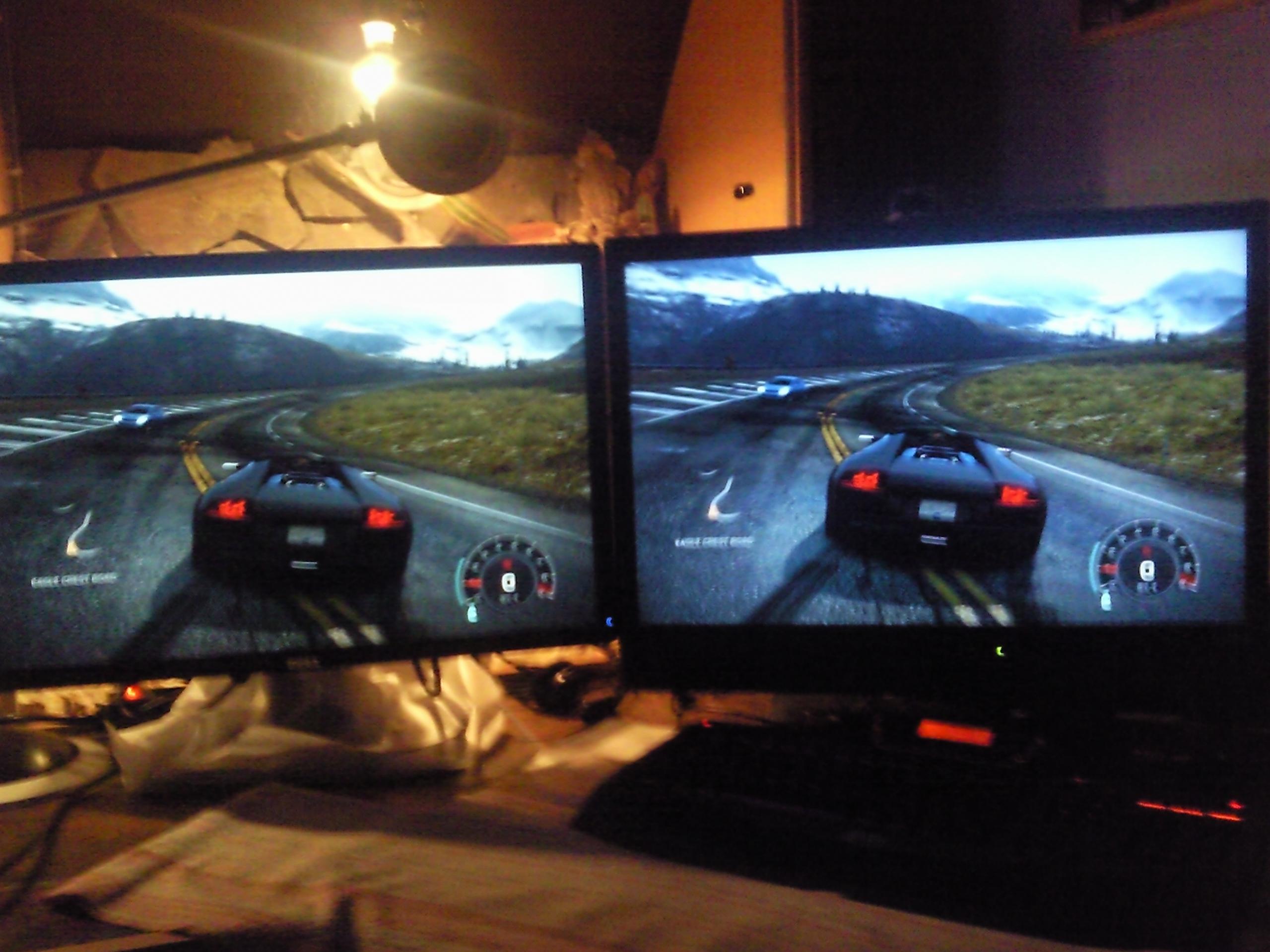 meine persönliche meinung nach hatt der rechte monitor schöneres bild ? der boden is übrigens nass :D
