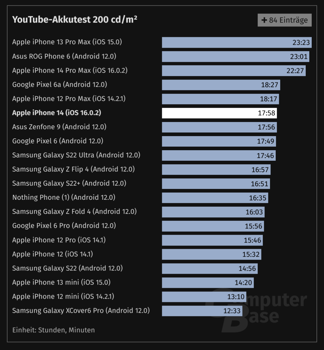 Nicht böse gemeint, aber manchmal schadet es nicht, über den Tellerrand hinaus zu schauen. Der Akku des S22 Ultra hält genau so lange wie der des IPhone 14: