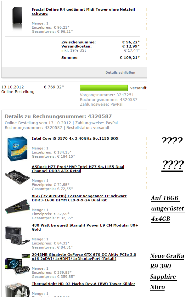 ich möchte meinen Pc aufrüsten. Habe schon eine 500GB SSD,16GB Ram und eine neue GraKa R9 390 Sapphire eingebaut.