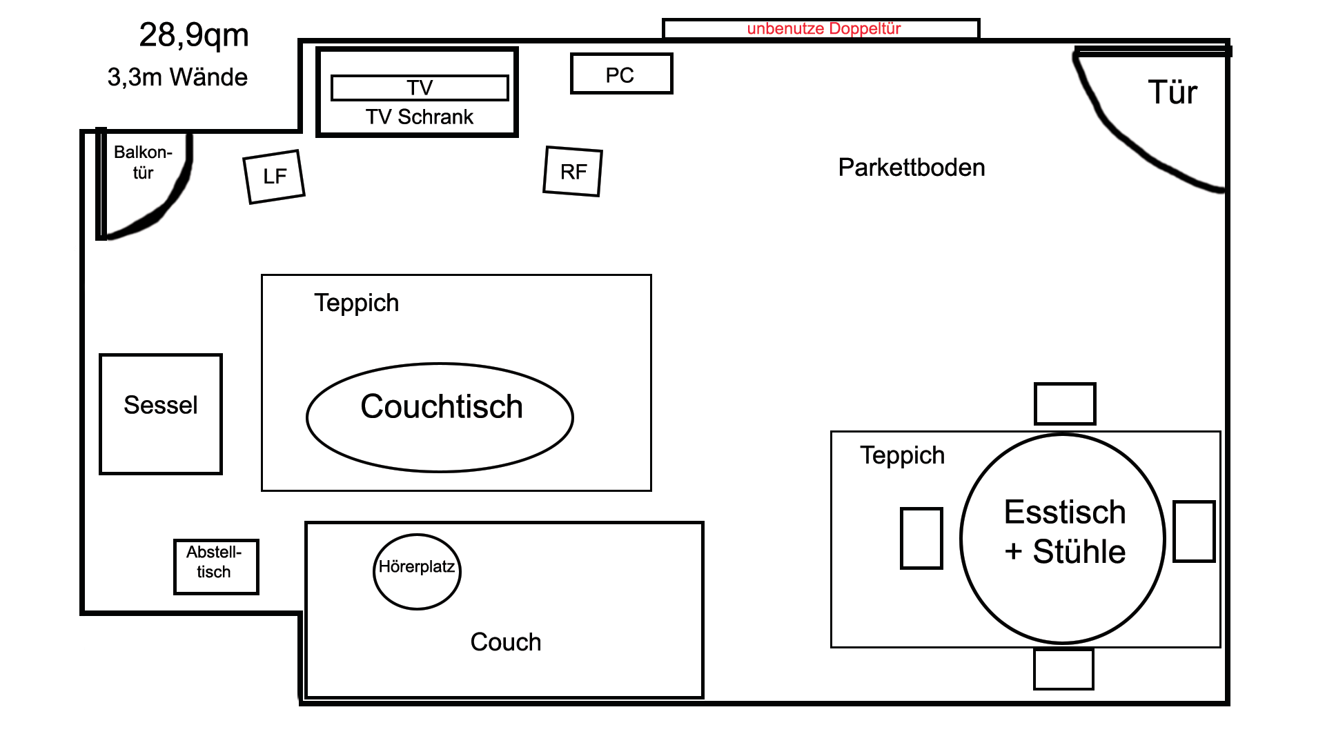 Eine Skizze des Raums füge ich noch hinzu.