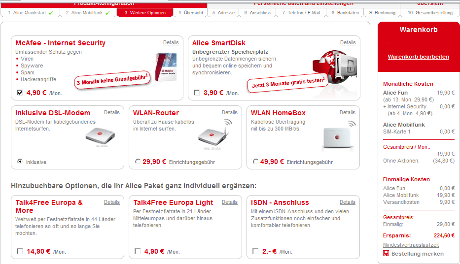 Hi, Ich suche einen guten W-lan Router, ein schnurloses Telefon und eventuell noch einen Wlan Stick für meinen Computer. Gebraucht werden sie für meinen soeben abgeschlossenen ALice Fun Anschluss ( bei mir verfügbar 5000-10000 ) . Wichtig ist mir ein gutes Preis/Leistungsverhältnis.