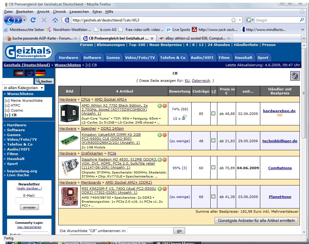 Da ich derzeit nicht genug Geld habe, um mir einen neuen PC zu kaufen, wollte ich mir zunächst nochmal eine AGP-Karte zulegen. Könnt ihr mir eine schnelle empfehlen, die zum Rest