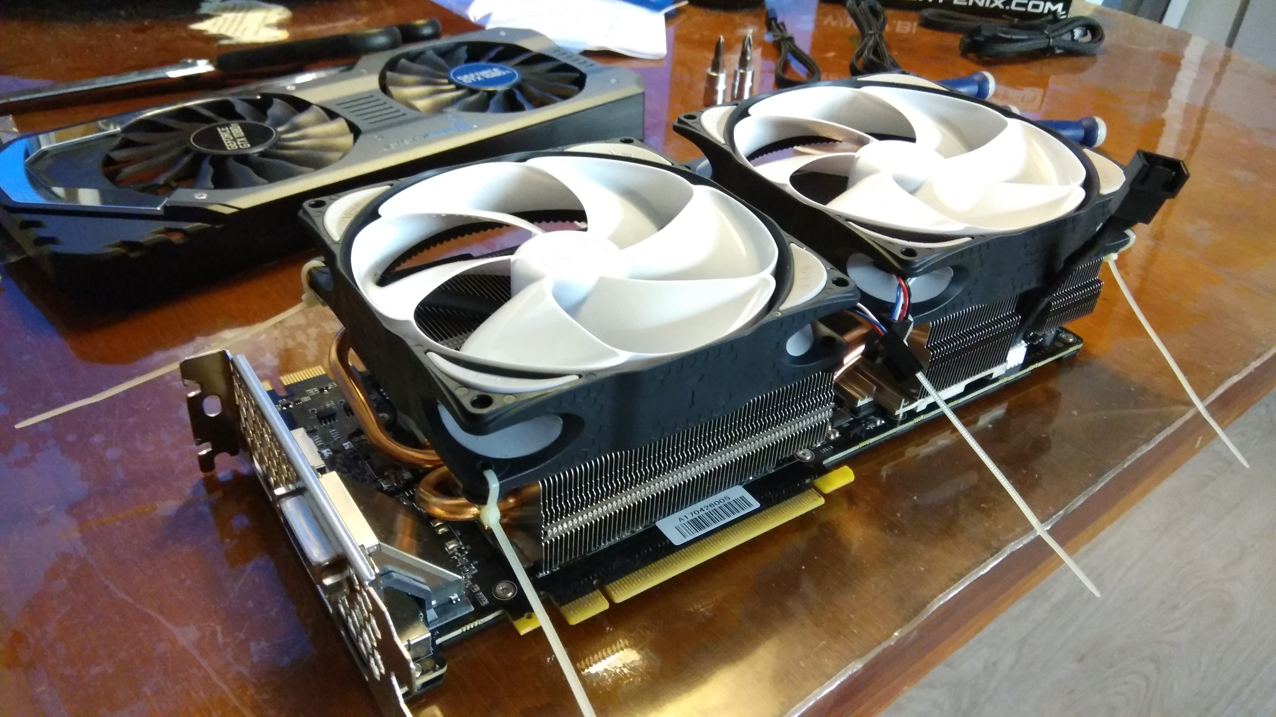 also, ich habe eine asus gtx 980ti grafikkarte und bei mir ist wohl ein lager am standartlüfter defekt. ich suche nun einen neuen. könnt ihr mir da welche empfehlen? habe zwar gelesen, dass es z.b. von arctic cooling welche gibt. dort steht aber immer nur beim passenden model 980 und 980ti dabei. jedoch nicht asus oder sonst was. jetzt weis ich nicht, ob es dann so oder so passt, da ich auch gelesen habe, dass es manchmal zu problemen mit der befestigung kommt, da z.b. stromanschlüsse oder sonst was im weg ist.