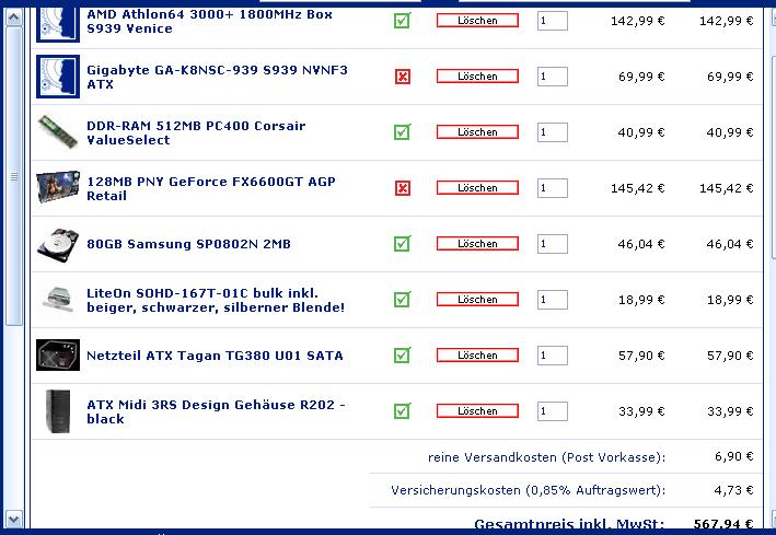 hast aber noch keinen Monitor. Aber wenn du nur 256MB-DDR nimmst und ne 9600pro mit 256mb-ram is der Monitor auch fast noch bezahlbar. Dafür hast du ne CPU die du etwa 25-30%übertakten kannst. http://www.tweakpc.de/tweaking/athlon_xpm_oc/athlon_oc.htm