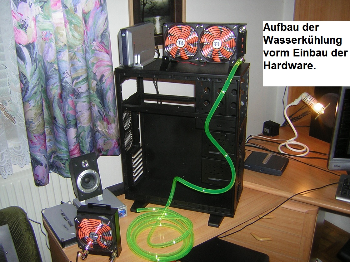 Ich hab auch schon überlegt mein altes PC Gehäuse zu nehmen und dort die Radiatoren inkl. Pumpe und Behälter zu installieren, aber das ist wieder zu groß.
