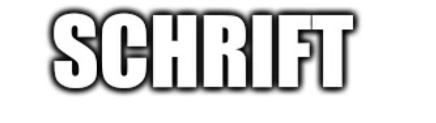 Weiße Schrift in Großbuchstaben mit schwarzem Rand.