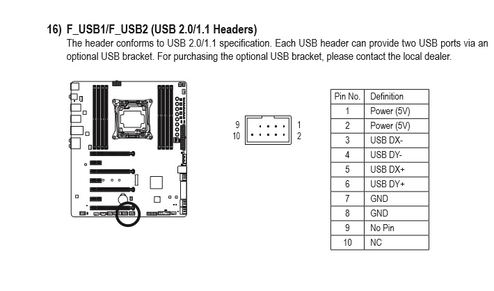 Aber und jetzt kommts, der Front USB Stecker auf dem Board hat ja 9 Pins der untere ja einen mehr und die Stecker von Pumpe und NT haben auch jeweils 5 Pins ergo müssten die beide in den unteren der 5 Pins und nicht 4 hat, habe es auch getestet beides funktioniert nicht wenn nur die 4 Pins verbunden sind.