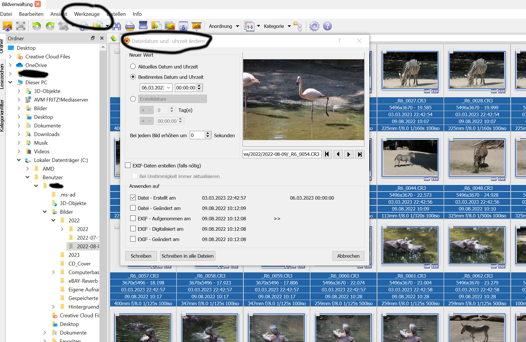 - es sollen nur Fotos umbenannt werden bei denen ein Aufnahmedatum vorhanden ist, Bilder ohne Aufnahmedatum sollen ignoriert werden.