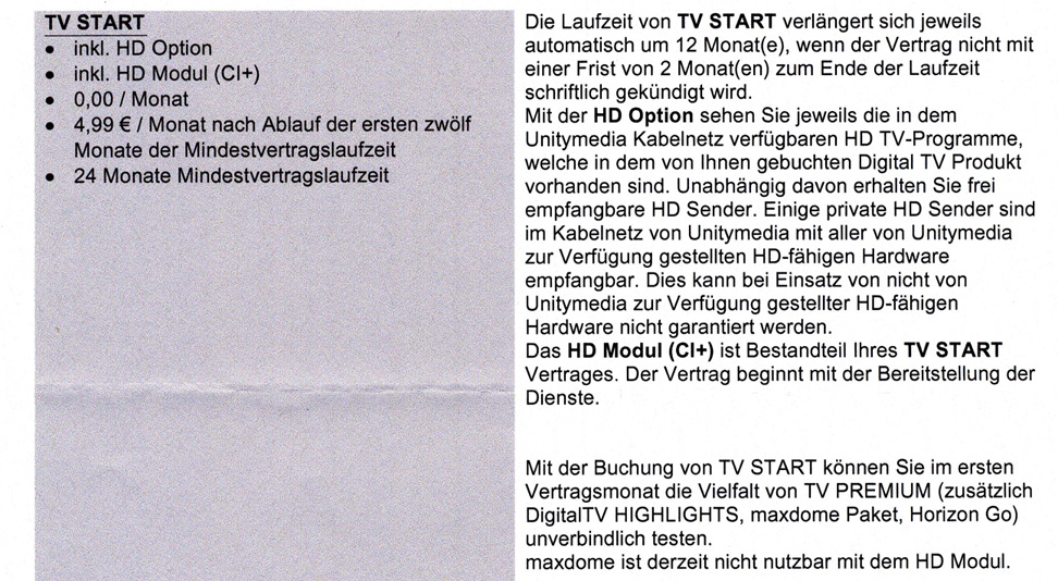 Ich persönlich möchte auf die HD-Sender nicht mehr verzichten. Wenn man es richtig anstellt, bekommt man das HD-Modul (CI+) gratis und den Tarif TV-Start für 2,99 € im Monat (Durchschnittspreis auf 2 Jahre gesehen). Dazu muss man alle 2 Jahre seinen UM-Vertrag kündigen und zu Sonderkonditionen wieder neu abschließen: