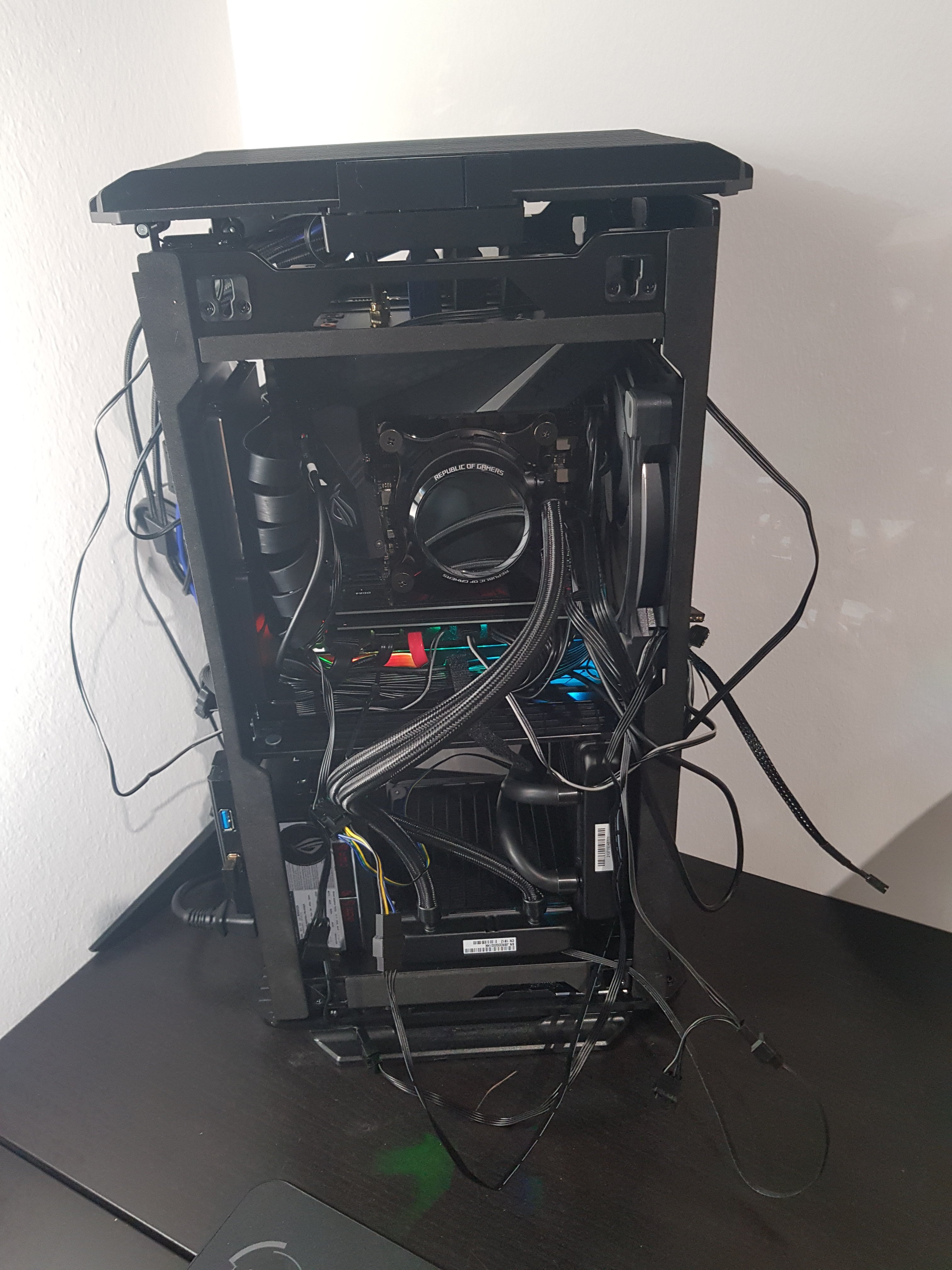 - Die CPU Wasserkühlung würde ich jedenfalls sofort wieder einbauen. Eine effiziente Luftkühlung ist in dem Gehäuse einfach rein platztechnisch schwierig. Die GPU Wasserkühlung braucht man wohl nicht, wenn man eine ordentliche (und leise) Karte hat