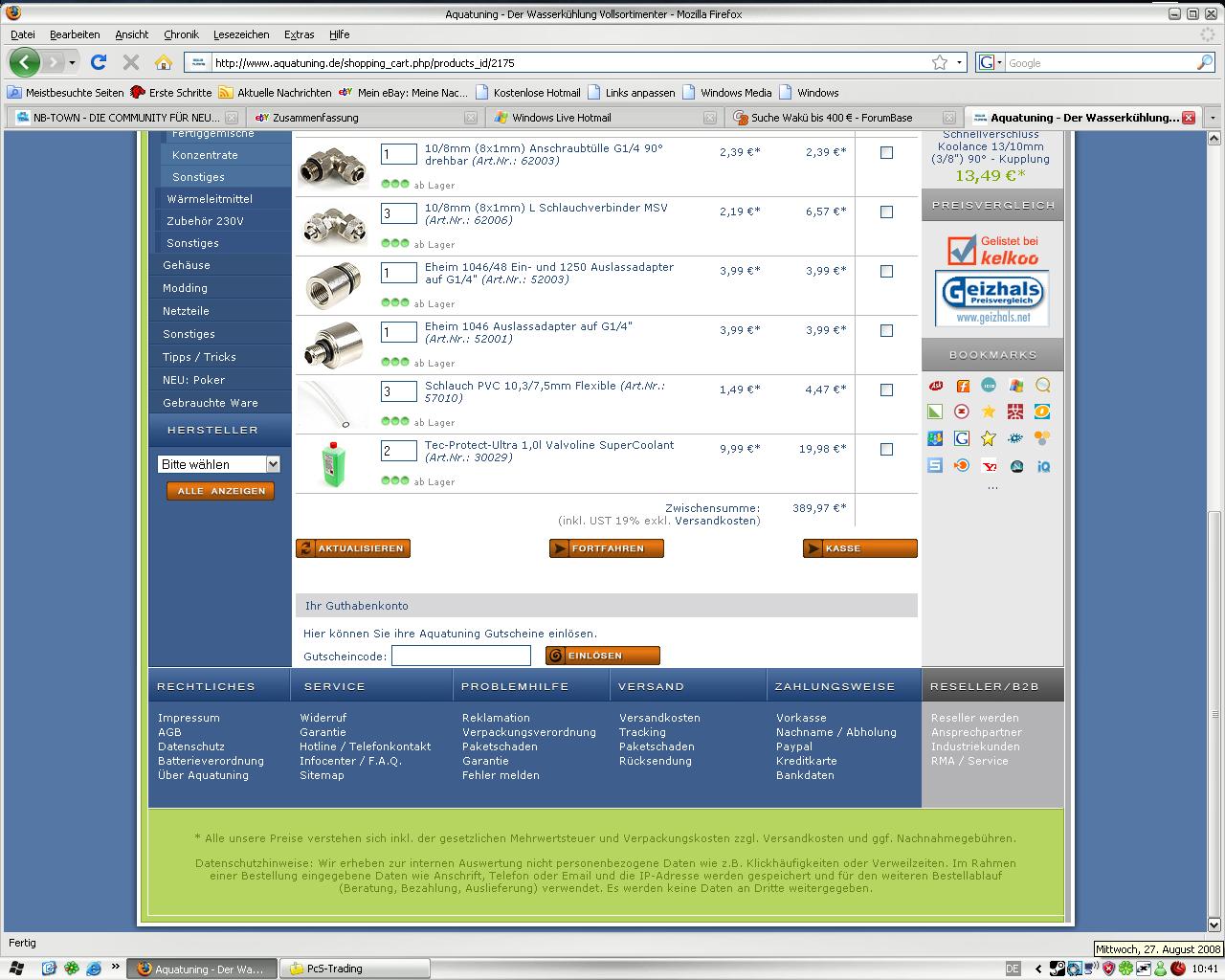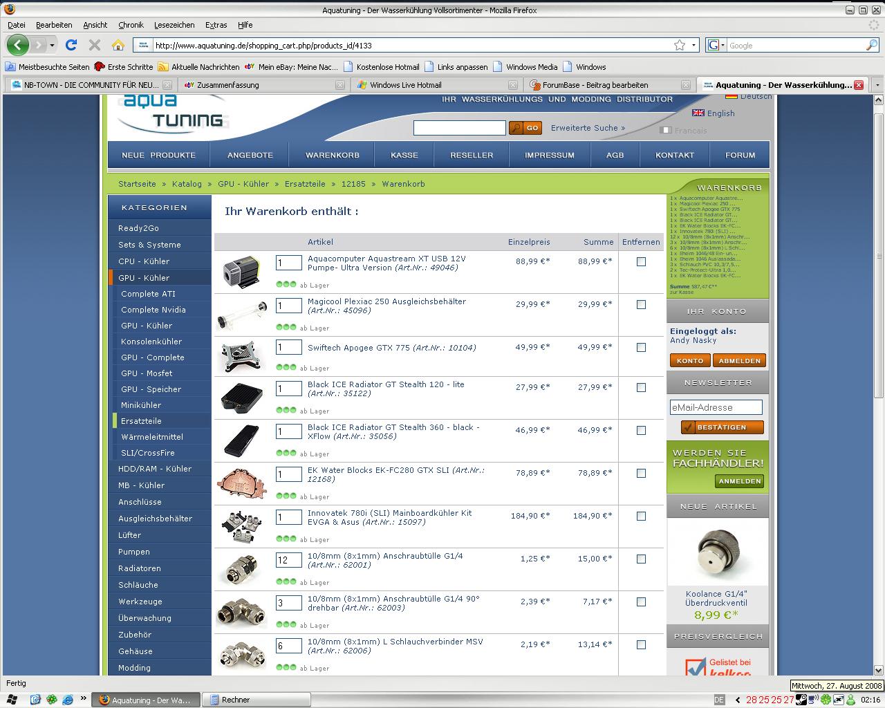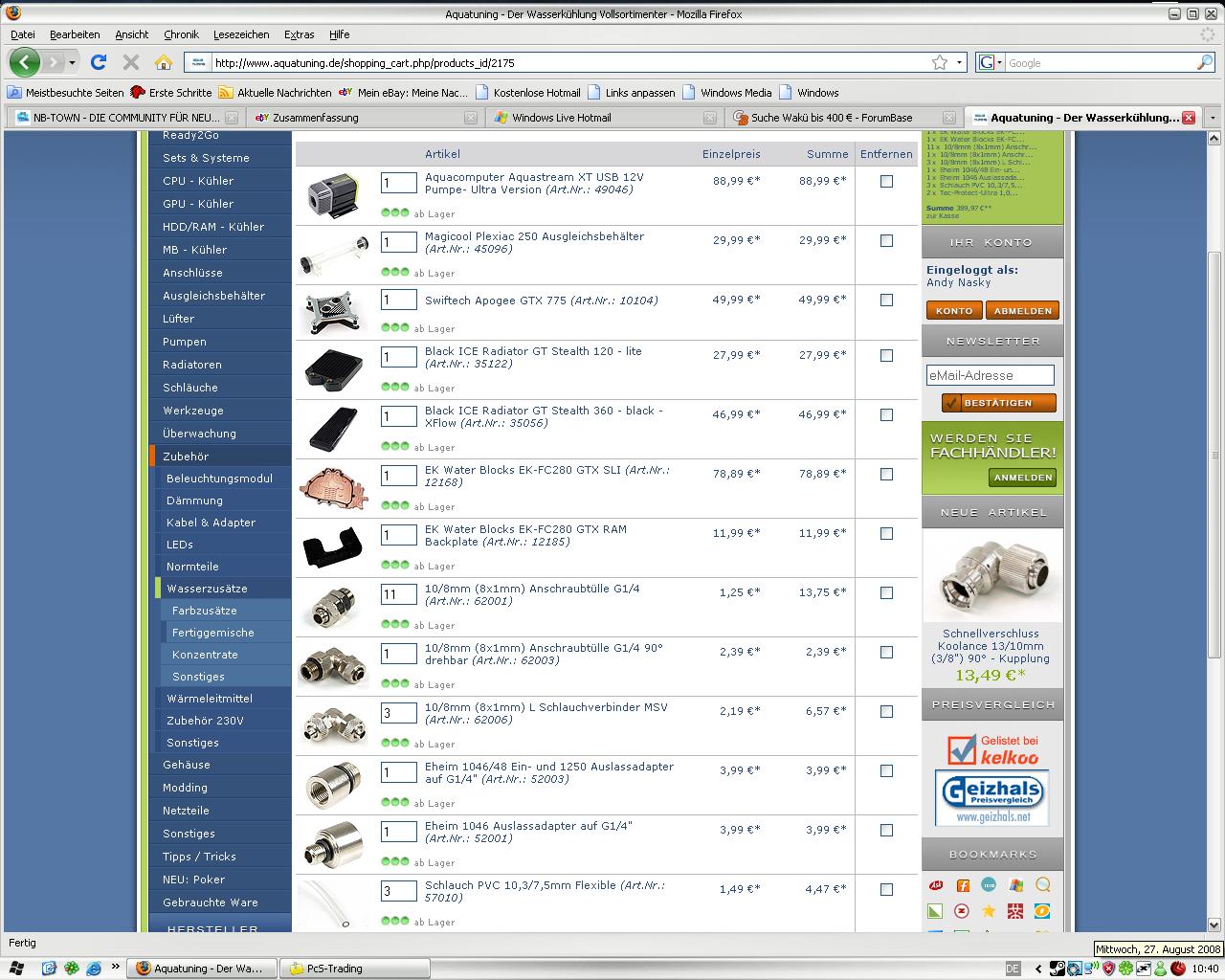 Habe vor die Grafikkarte mit der WAKÜ zu kühlen sowie die CPU und das Board so weit das Geld eben reicht. Als Preisgrenze hatte ich an 350-400 € gedacht. Da ich mich mit den ganzen Anschlüssen nicht auskenne wäre es super wenn Ihr mit euren Empfehlung immer ein komplettes System zusammen stellen könntet (mit Angabe welcher Schläuche usw.). Wie man sicherlich oben erkennen kann wurden die ganzen Komponenten fürs Übertakten gekauft. Über eure Vorshläge freue ich mich jetzt schon.
