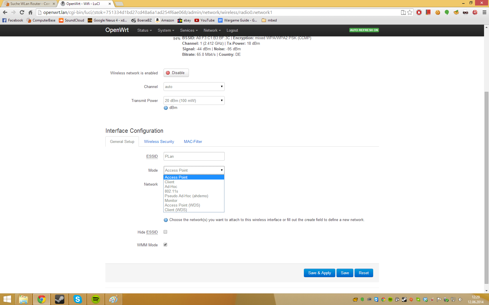 Im Client mode sind mir alle folgenden Spezifikationen egal! Hier muss nur die Verbindung zur aussenwelt verteilt werden.