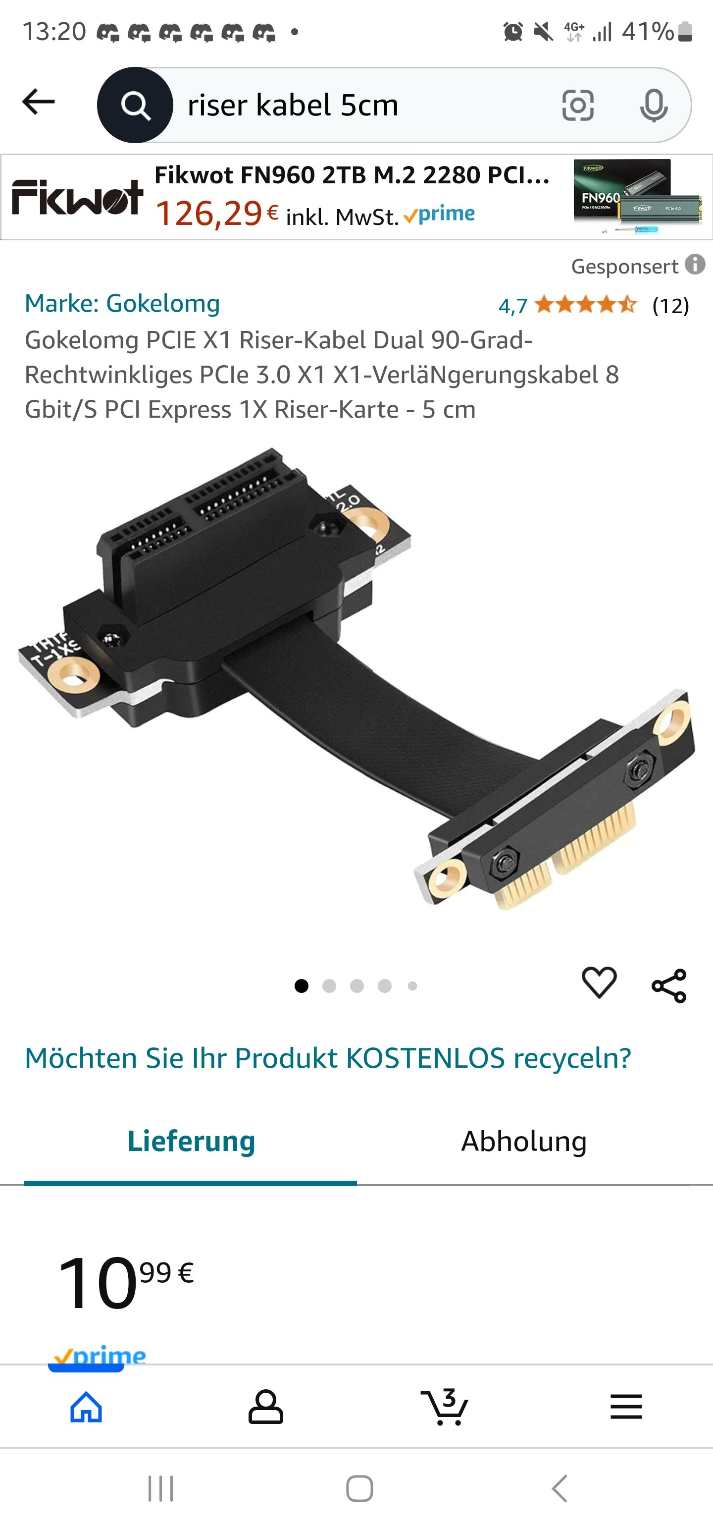 Dieses Kabel hier ist das richtige? Bin mir nicht sicher ob wirklich die 5 cm reichen werden hänge dann direkt unter der Grafikkarte bei dem 20 cm Kabel hätte ich nach unten Platz und könnte in den letzten Slot gehen.